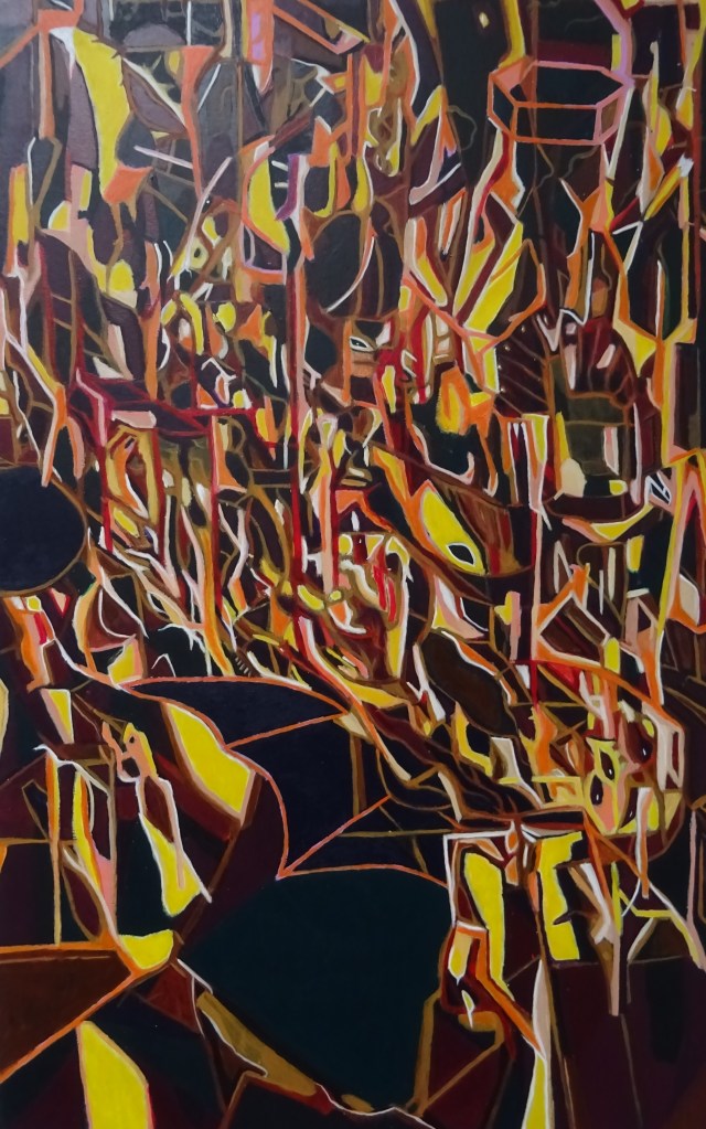 Je suis très heureux de vous montrer mon premier tableau, qui est le fruit de plusieurs années de réflexion autour des matériaux brut dans la peinture.