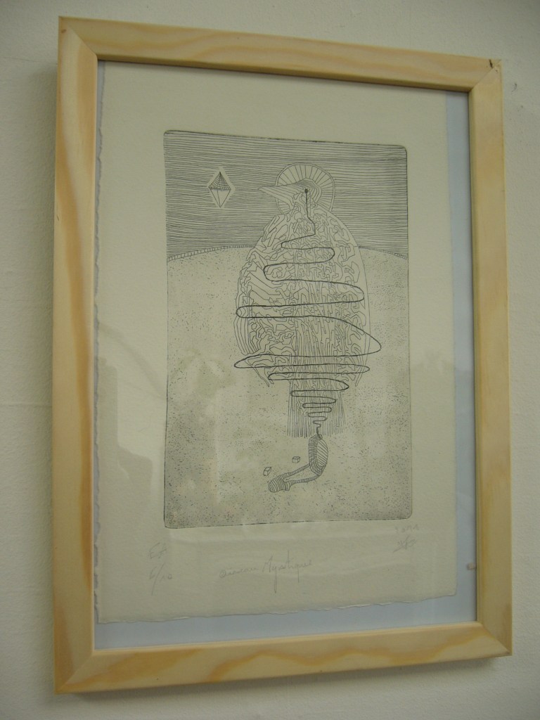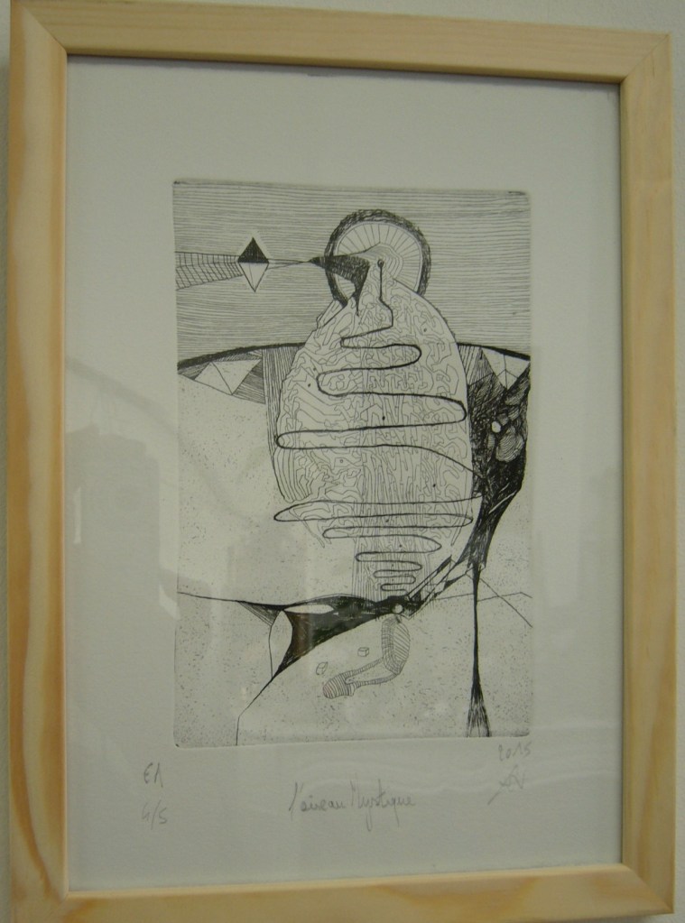 Oiseau Mystique et Musique Réfractacle et leurs second états, eau-forte encadrée dans un format 21/29.7 cm.