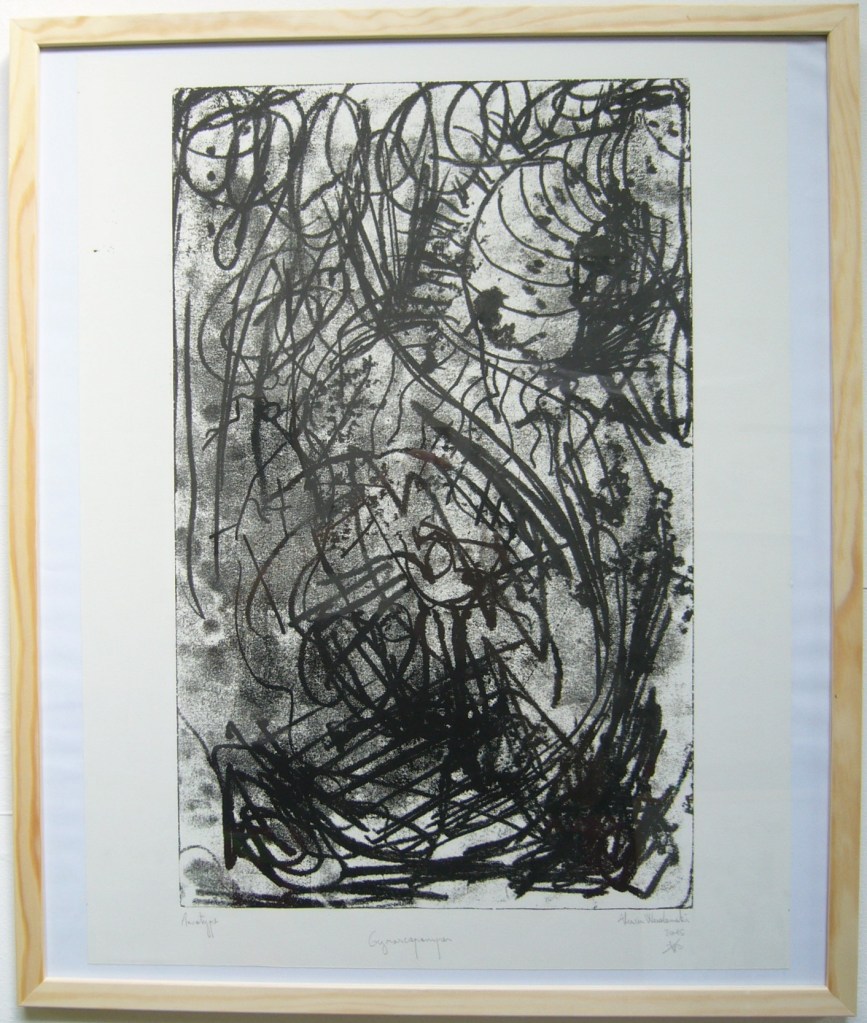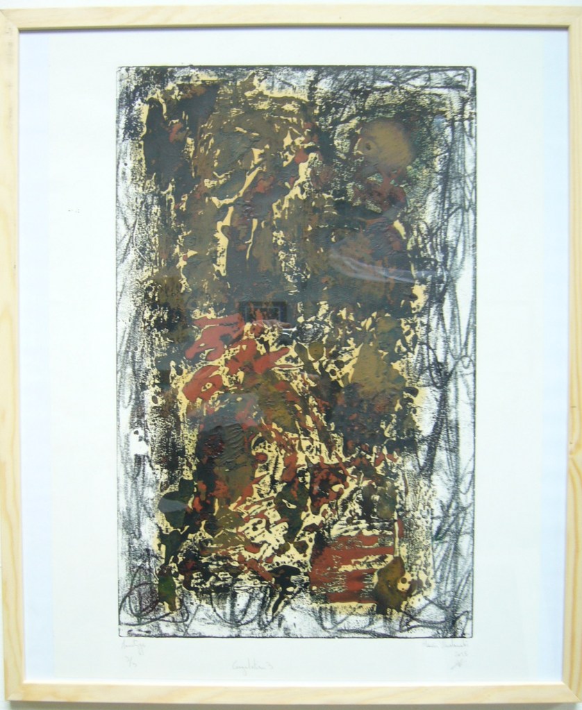 Je publie ici une série de mon premier travail dit « monotype », car en absence de plaque gravée. Ce travail a pour particularité, que les tirages continuent leur travail bien après leur impression.