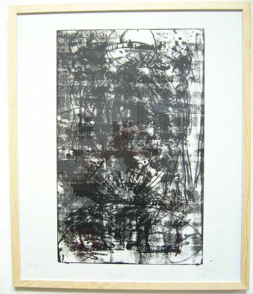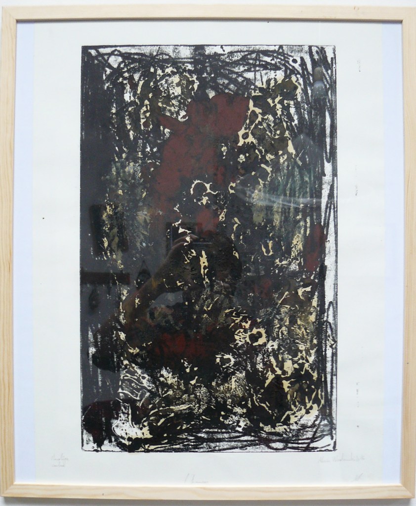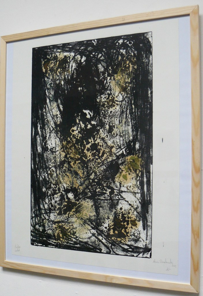Au-delà de ça, c’est un travail également original dans sa façon de penser l’estampe, sans multiple, mais plutôt comme des séries de tirages uniques, avec des tirages très expressifs, des zones très chargées en encre jusqu’à obtenir une épaisseur importante.