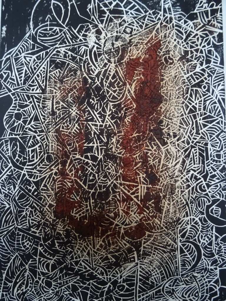 J’ai changé le creux de la plaque en relief sur le tirage, chose que l’on voit peu en gravure.