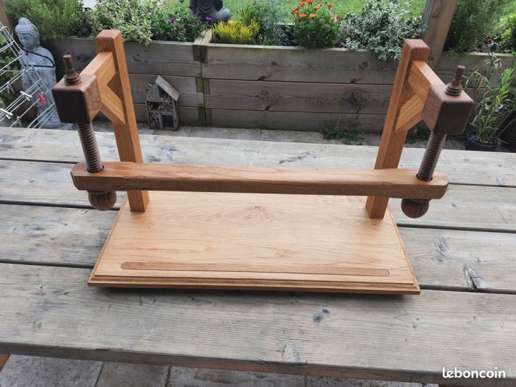 Si vous me trouvez un étau de table (presse à dorer) avec ces dites machoires, cela peut aussi faire l’affaire et sera un gain de place, mais je serai limité dans les formats d’ouvrages possibles à réaliser.