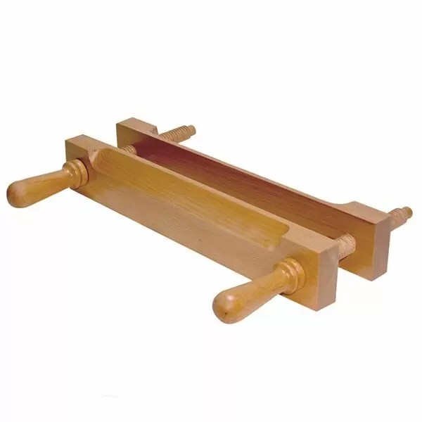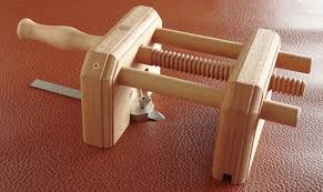 Pas forcément indispensable dans tout type de travail de reliure, la pince à nerfs fait quand même partie des incontournable du travail de reliure, car elle permet comme son nom l’indique, de façonner des faux nerfs au dos du livre.