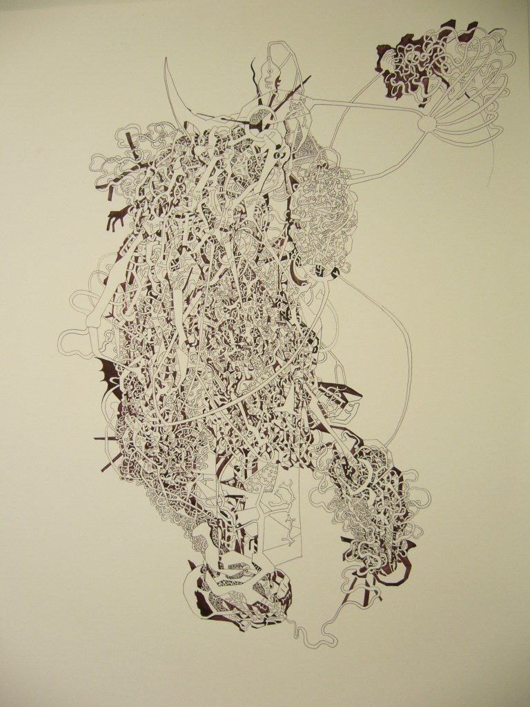 Dessin à la plume et encrage sur papier, format grand aigle (75/110cm environ)