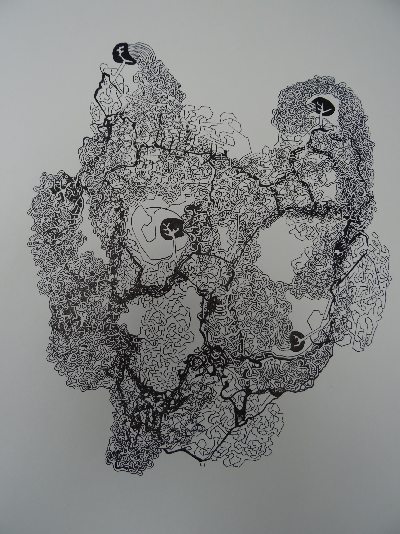 Plume et encre sur carton, encadré sous verre, 35/50cm; 2013 Ma femme surnomme ce dessin « la toile cosmique », mais il ne s’agit pas de son titre. Ce dessin est représentatif du travail que je développe depuis quelques années, je vous renvoie d’ailleurs à cet article qui détaille ma pratique du dessin : On y distingueLire la suite « Sans-titre/ « la toile cosmique » »